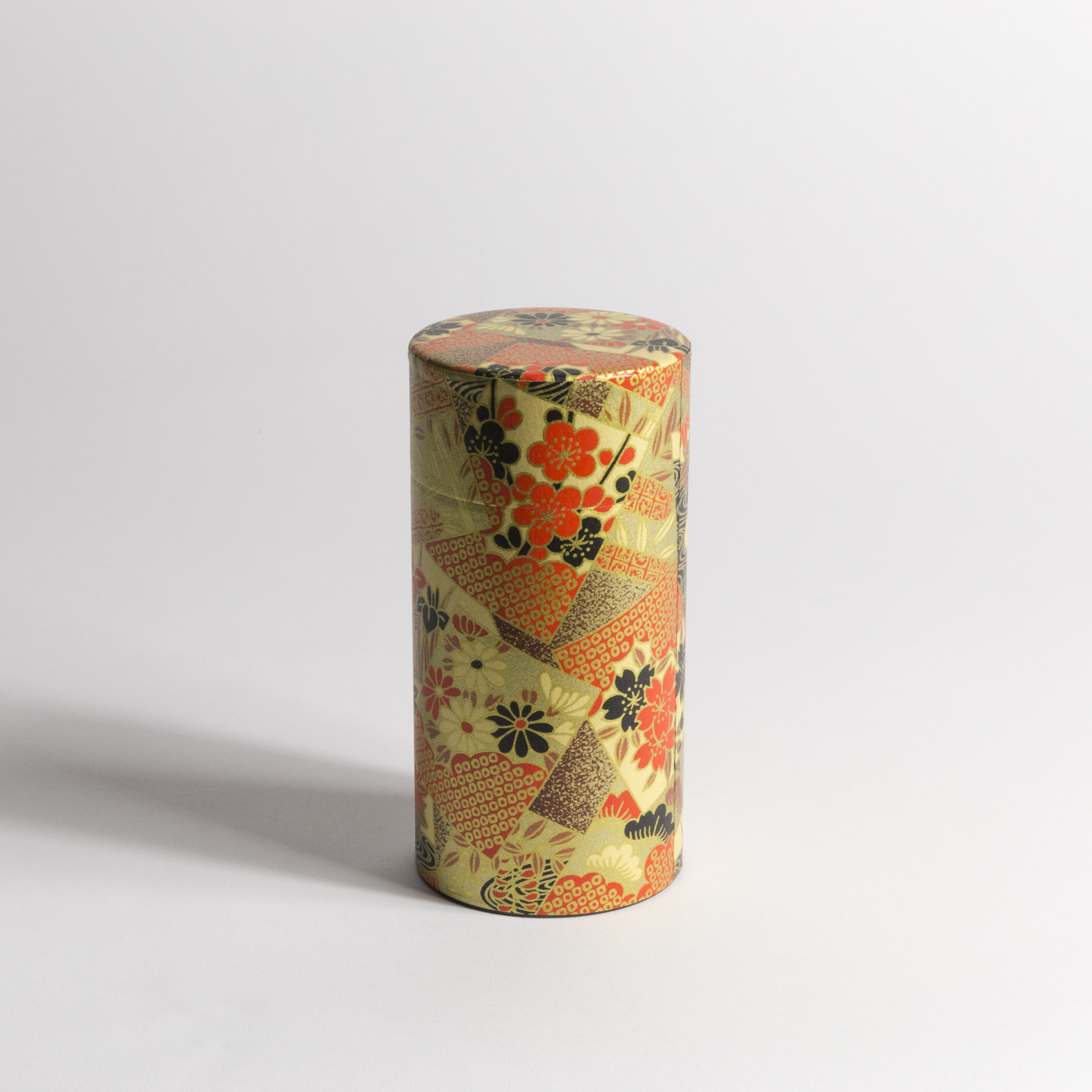 Boîte à thé métal, recouvert de papier washi, motif "Patch" rouge.