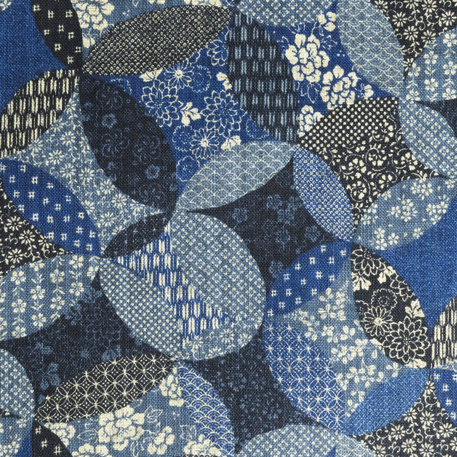 Coton au mètre, motif "Rosace" indigo. COMMANDE MINIMALE : 5 MÈTRES