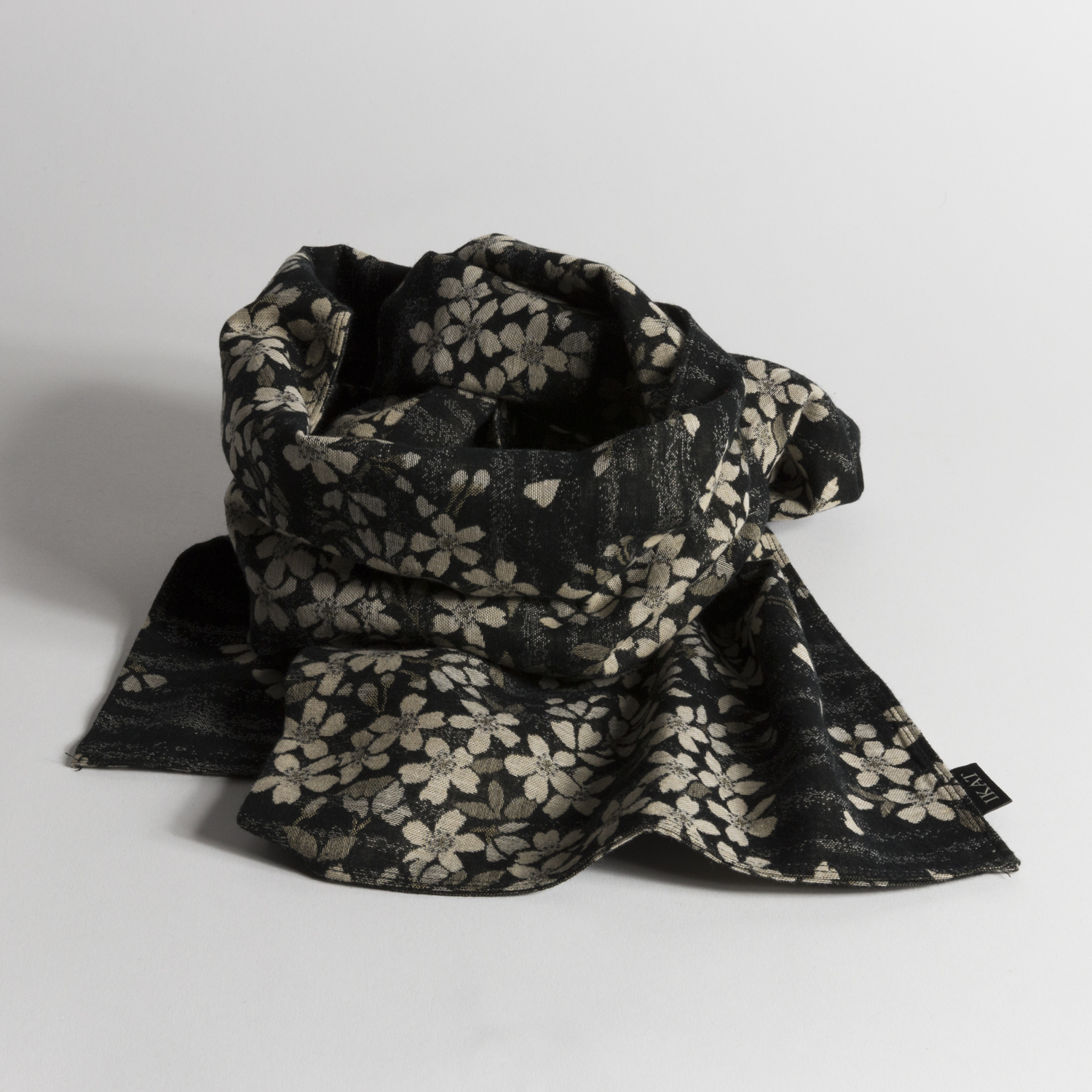 Étole en coton doux motif "Sakura". Conçue et confectionnée dans notre atelier parisien.