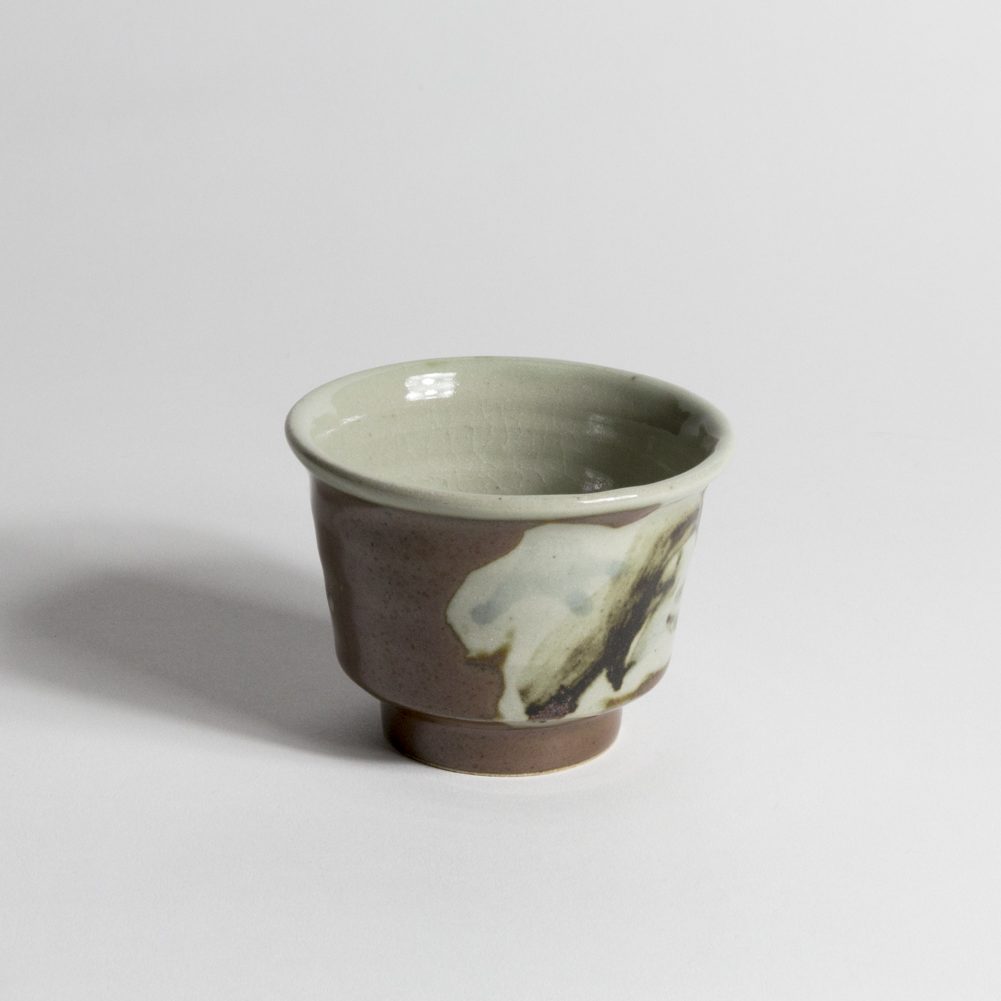 Gobelet trapèze en grès gris, "Corail et Fleur".