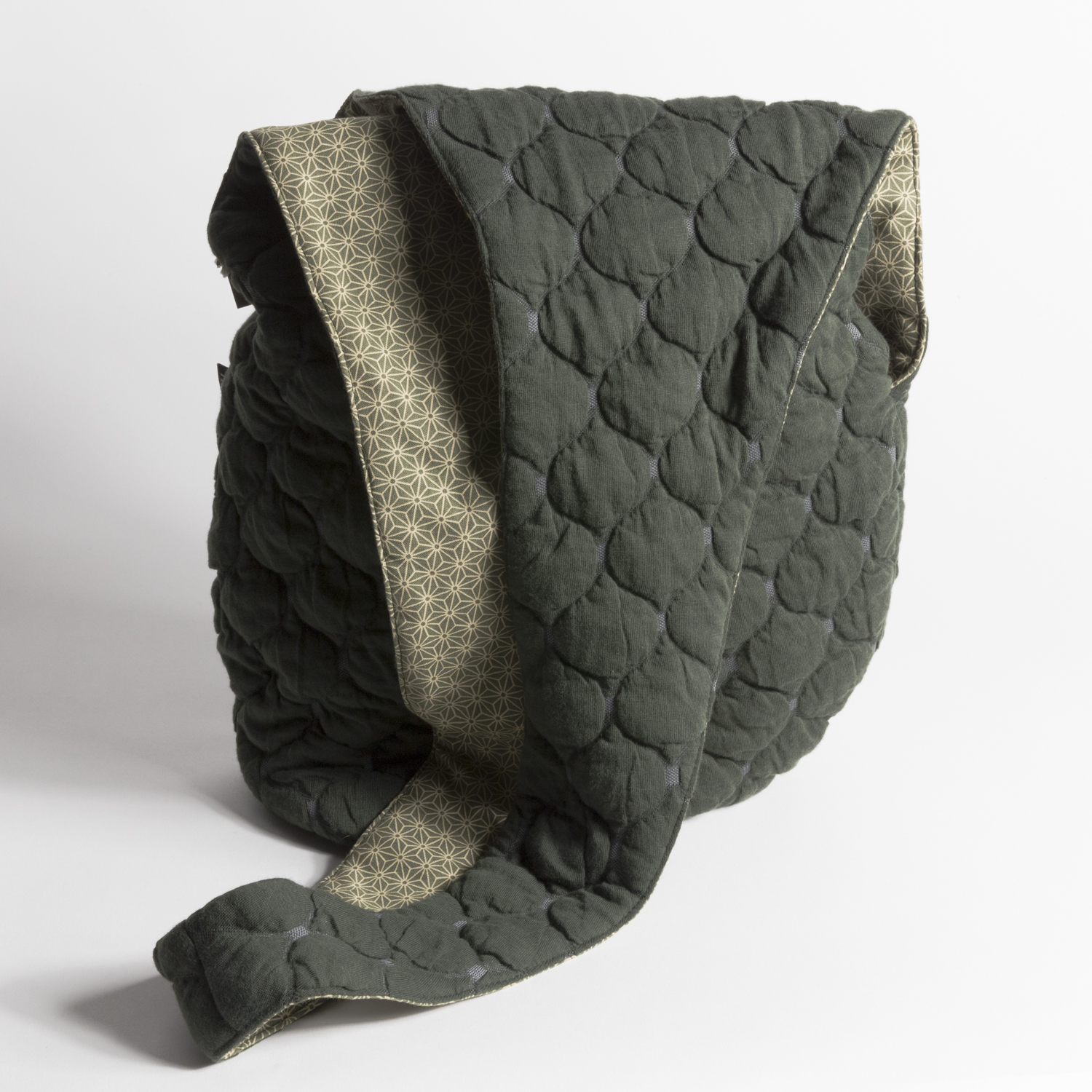 Sakari en coton molletonné kaki, intérieur Asa vert. Produit conçu et confectionné dans notre atelier parisien.