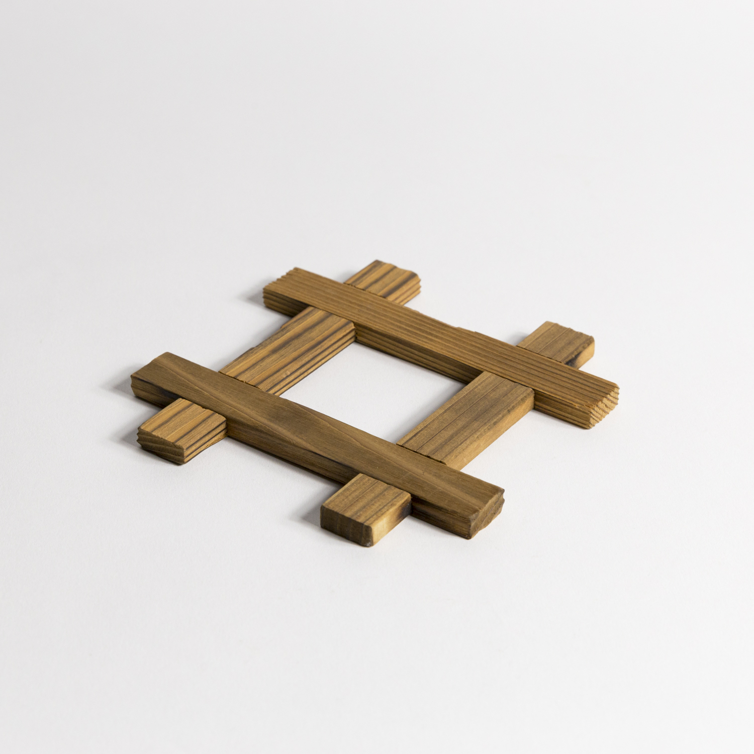 Sous-bol carré en bois "tressé" brun naturel.
