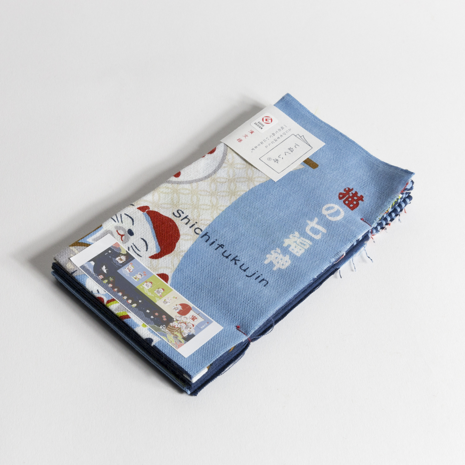 Tennugui de coton, motif "Sept Dieux" bleu.